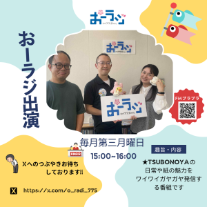 毎月第3月曜15:00〜16:00、FMプラプラで「TSUBONOYAの紙の魅力」をワイワイ発信中。